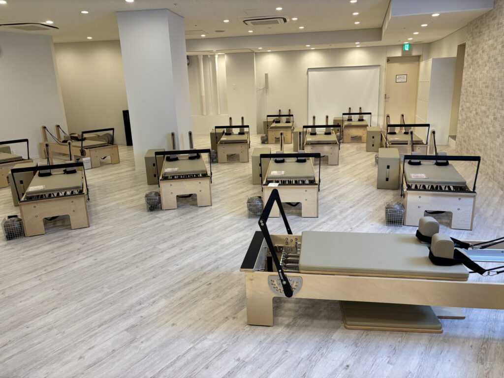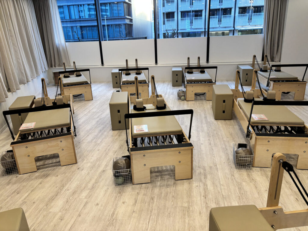 マシンは錦糸町、大宮と同じリフォーマーです。他店舗と違って重くもなく軽くもない感じだったので体のバランスは取りやすいかもしれません。